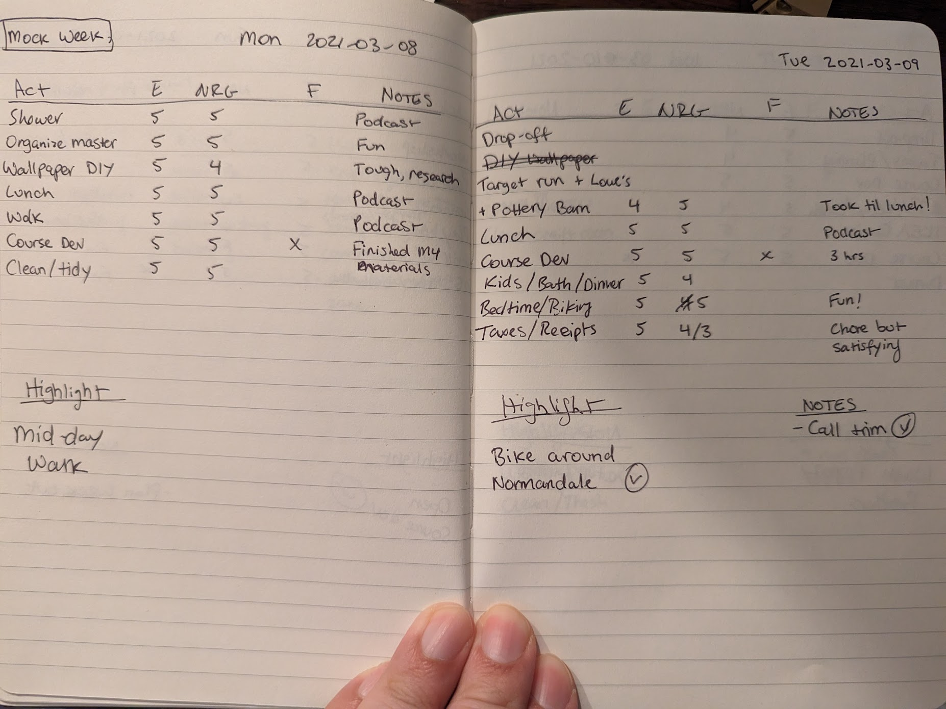 I had not been using the weekly planner I use now, Passion Planner (#PashFam represent!), so I planned out the week in my notebook.